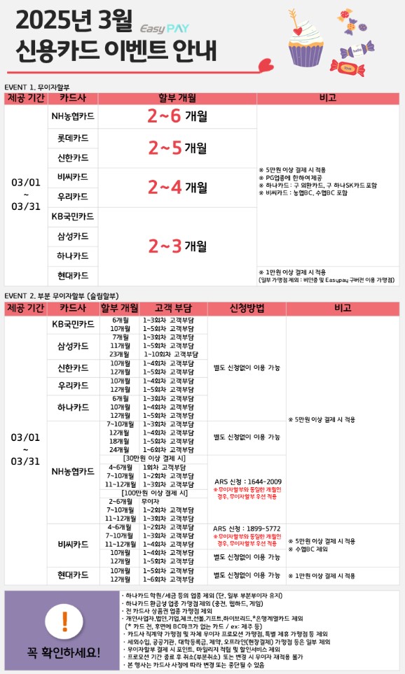 2025년 3월 신용카드 무이자 할부